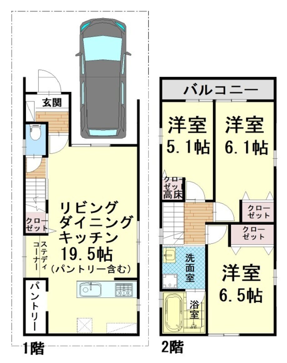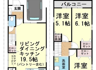 リビングダイニングキッチン広々19.5帖!