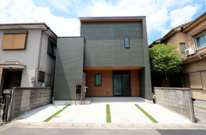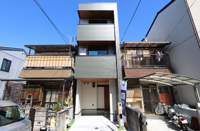 【伏見区舞台町】グリーンの壁面が空に映える住まい