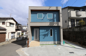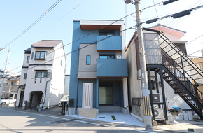 【伏見区舞台町】グリーンの壁面が空に映える住まい