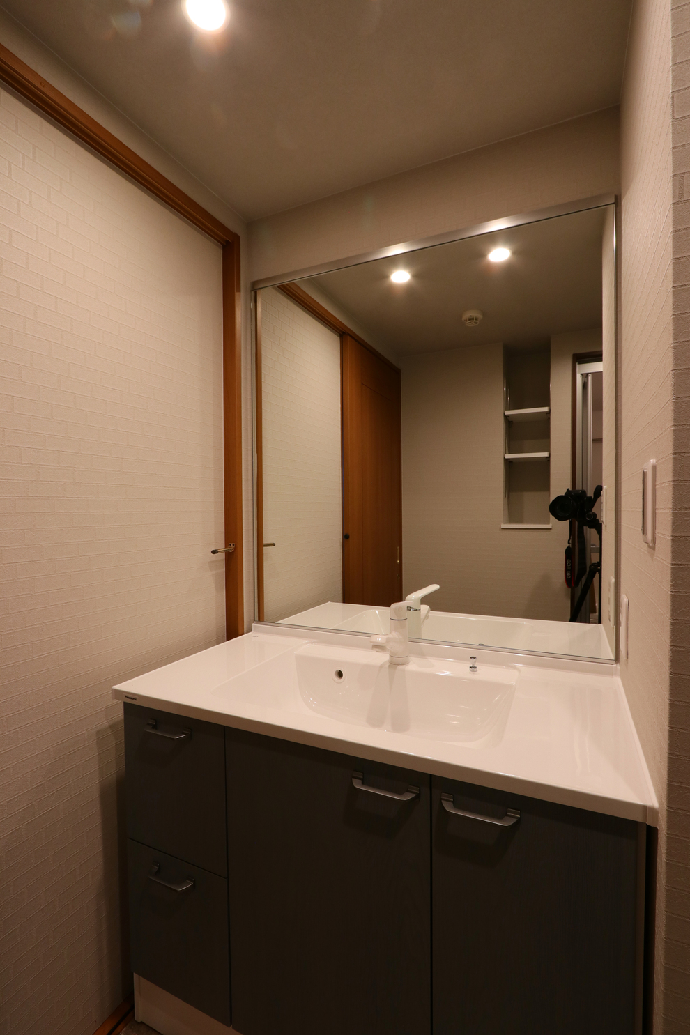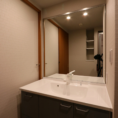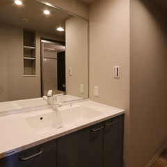 洗面ドレッサーはワイドタイプを採用。ホテルライクな雰囲気が漂います。