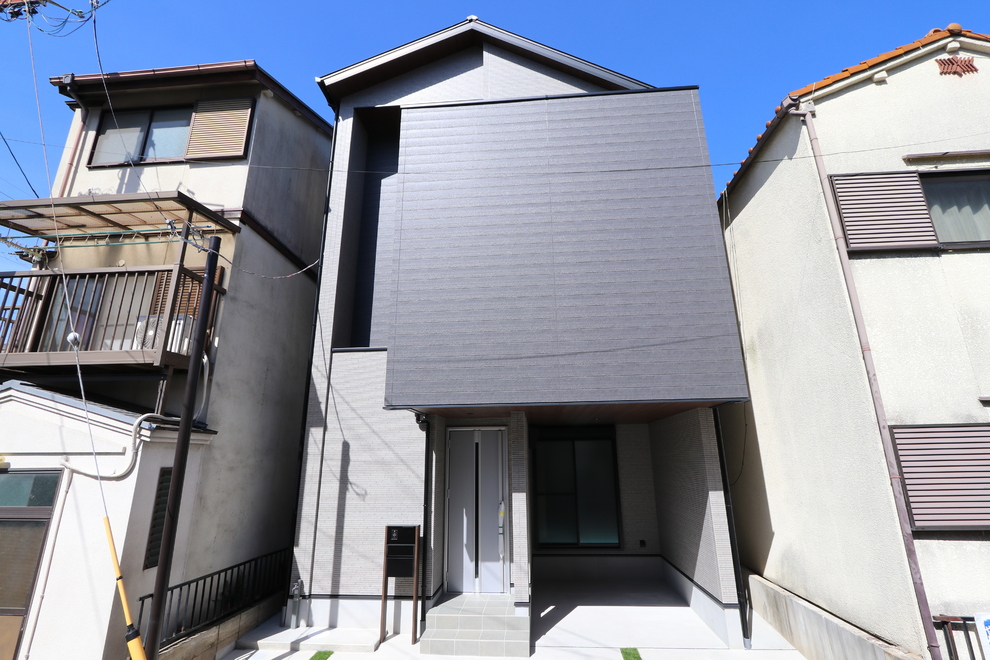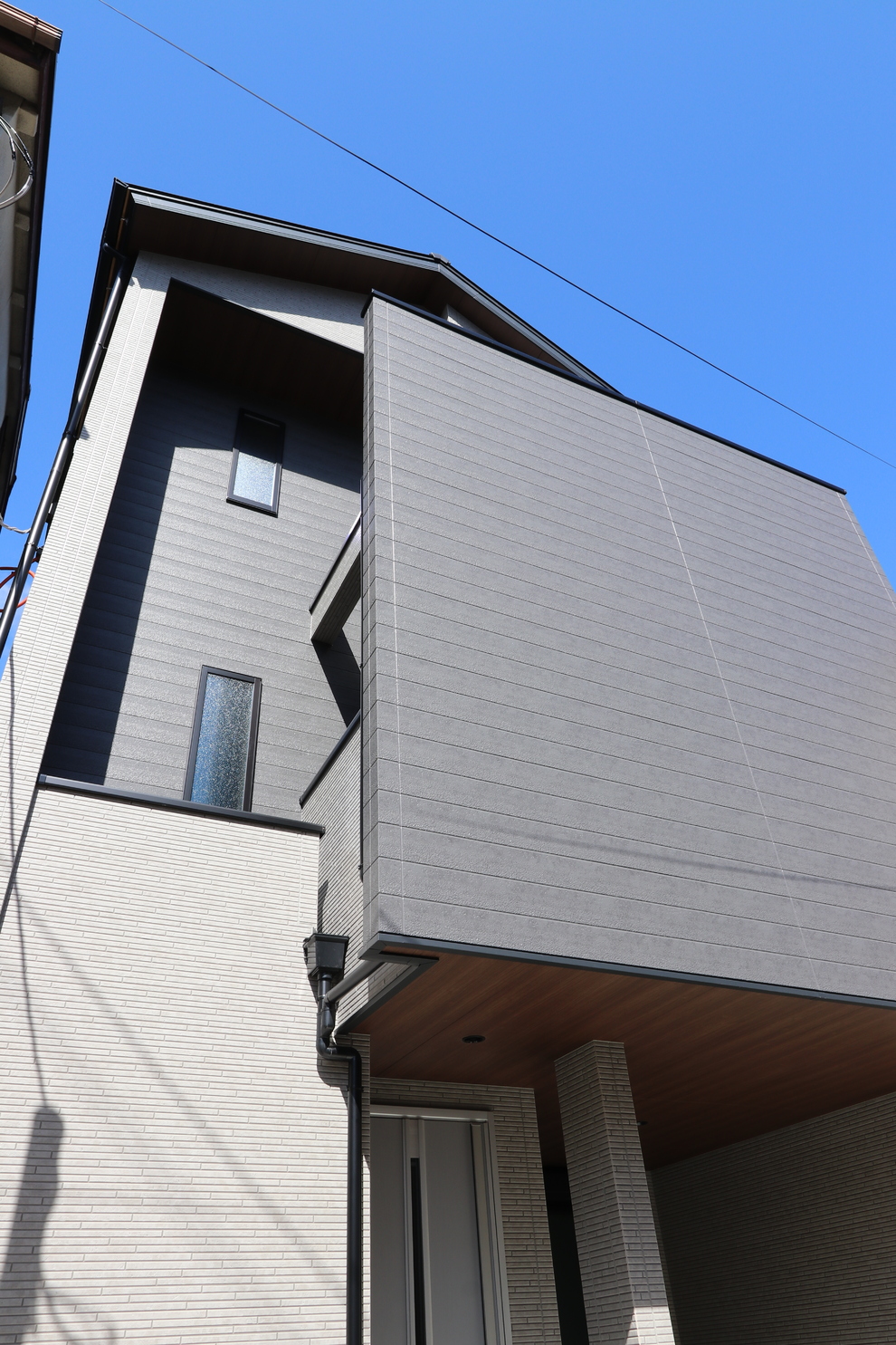 グレー系でまとめたモダンでスタイリッシュな外観。