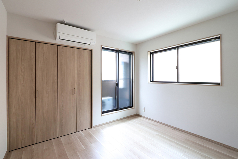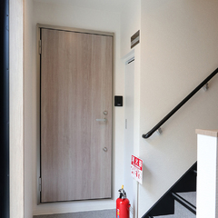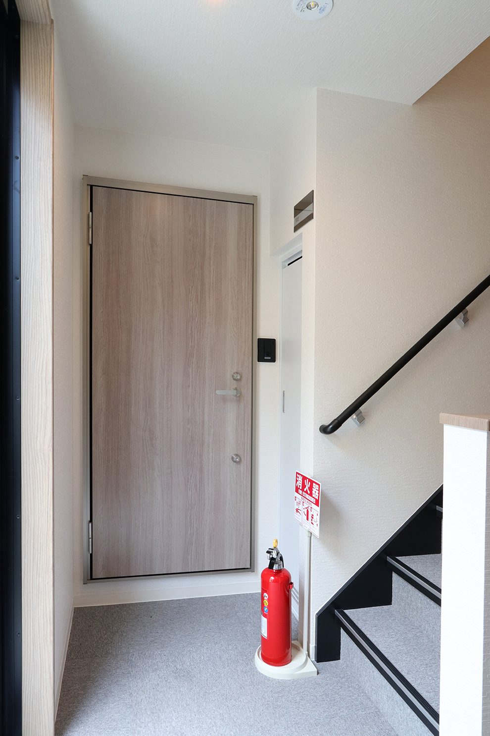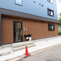 ブルーとブラウンの配色が印象的な新築賃貸アパート。