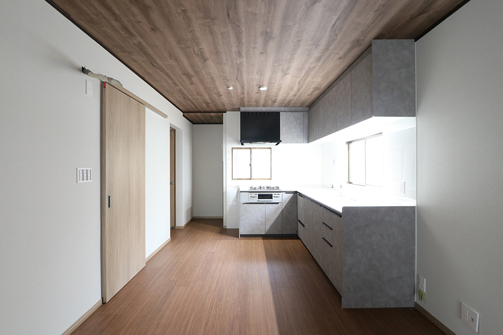 L型のシステムキッチンを新設。