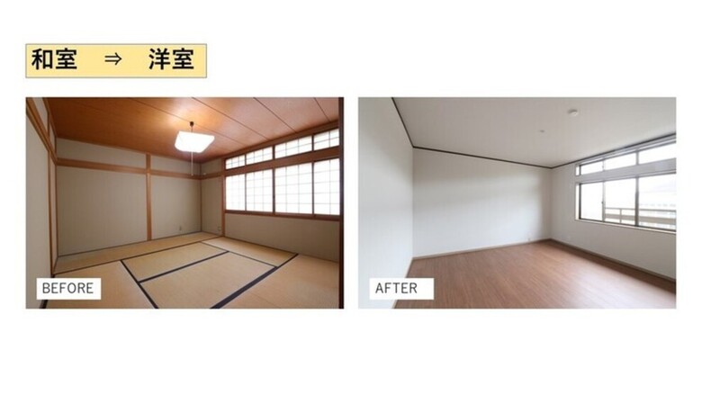 和室を洋室にリニューアル。使いやすいスタンダードな色合いに改装。